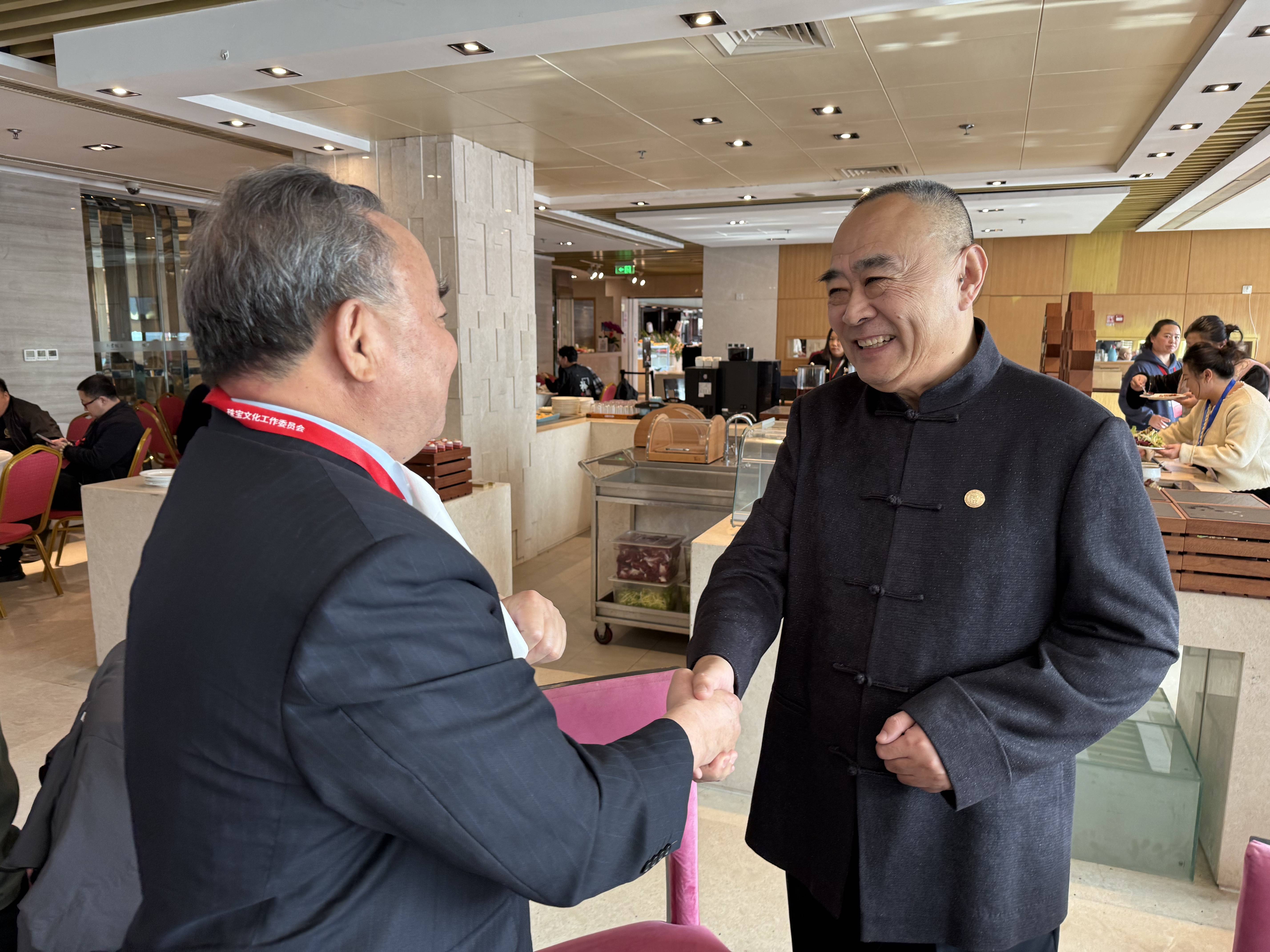大会期间,北京收藏家协会会长高博达与罗大友进行了亲切深入的交流。高博达会长对罗大友受聘担任北京收藏家协会茶文化专业委员会会长致以诚挚祝贺,高度肯定其深耕茶文化非遗传承数十年所取得的卓越成就,同时围绕茶文化藏品的挖掘、保护与传播,以及协会如何借助茶文化资源丰富收藏领域生态等话题展开探讨;罗大友也对协会的信任与认可表示感谢,他表示愿与协会携手,以茶文化专业委员会为纽带,整合各方资源,让茶文化收藏与非遗传承相互赋能。